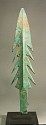 Bronze axes from Bolivia were often surmounted with the figure of a collared jaguar, with an erect tail and tongue protruding between the fangs of the lower jaw. Similarly stylized Peruvian examples are shown in Carcedo de Mufarech (1999: fig. 157; and Posnansky 1896: v. 3/4: pl. 87). Although this piece is technically provincial Inca, the form of the collared jaguar came from regional cultures in Bolivia.